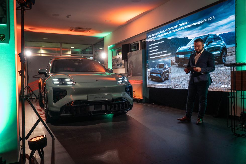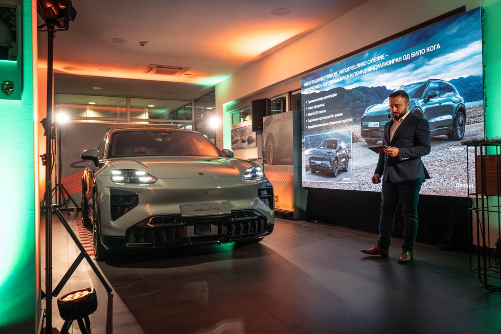 Menaxheri i Marketingut të brendit Porsche, Stefan Jovanovski, theksoi se interesi në tregun e Maqedonisë është i konsiderueshëm: “Audienca në Maqedoni është gjithnjë e më e hapur ndaj lëvizshmërisë elektrike në segmentin premium. Cayenne Electric sjell një nivel të ri të dinamikës sportive dhe sofistikimit dixhital. Nuk është vetëm një SUV elektrik – është Porsche në formën e tij më të përparuar”.